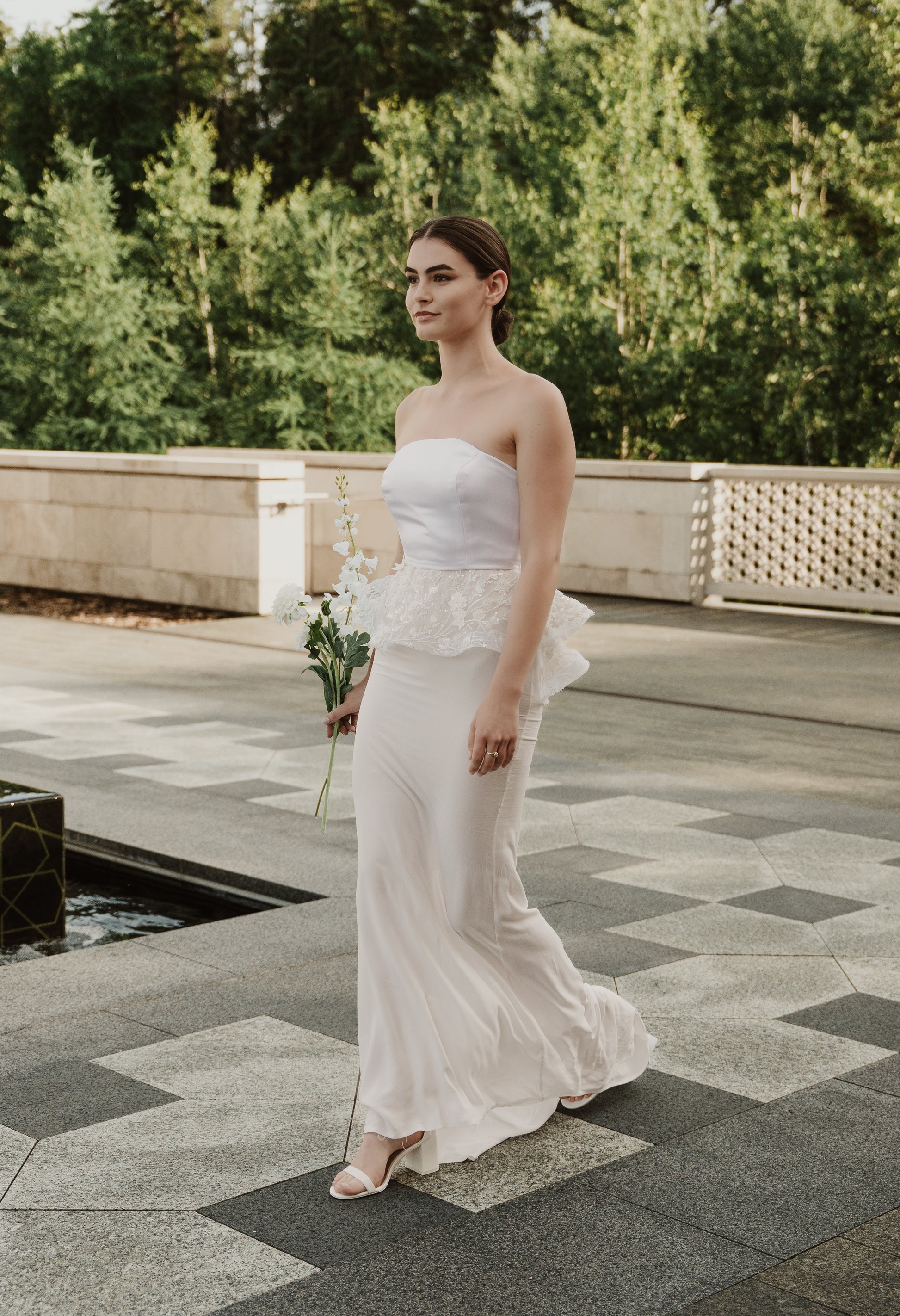 Meet Grace a sleeveless peplum blouse that embodies simplicity, elegance, and versatility paired perfectly with a stunning luxurious and soft crepe skirt finished with french seams for that luxury and clean finish.
